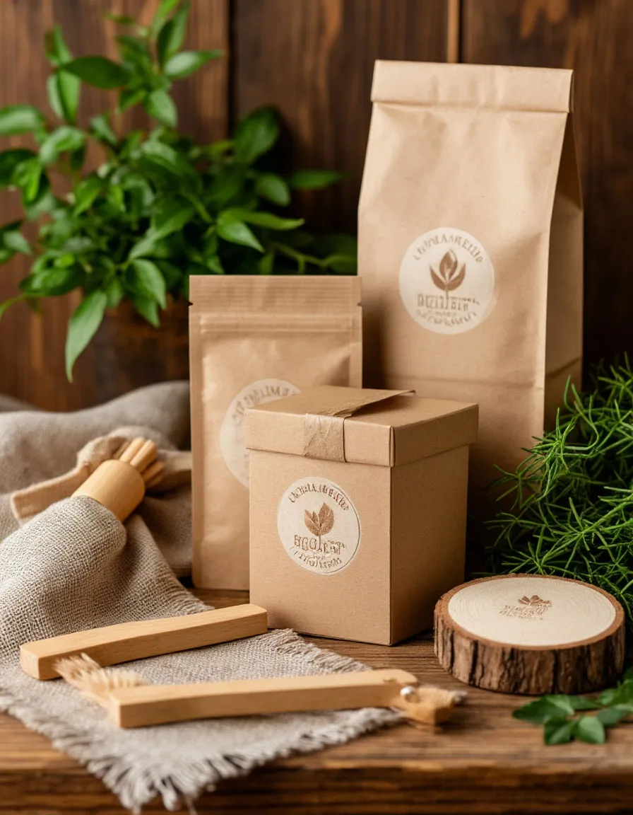 Экологичный комплект: бамбуковые принадлежности, органический чай, эко-косметика в перерабатываемой упаковке.